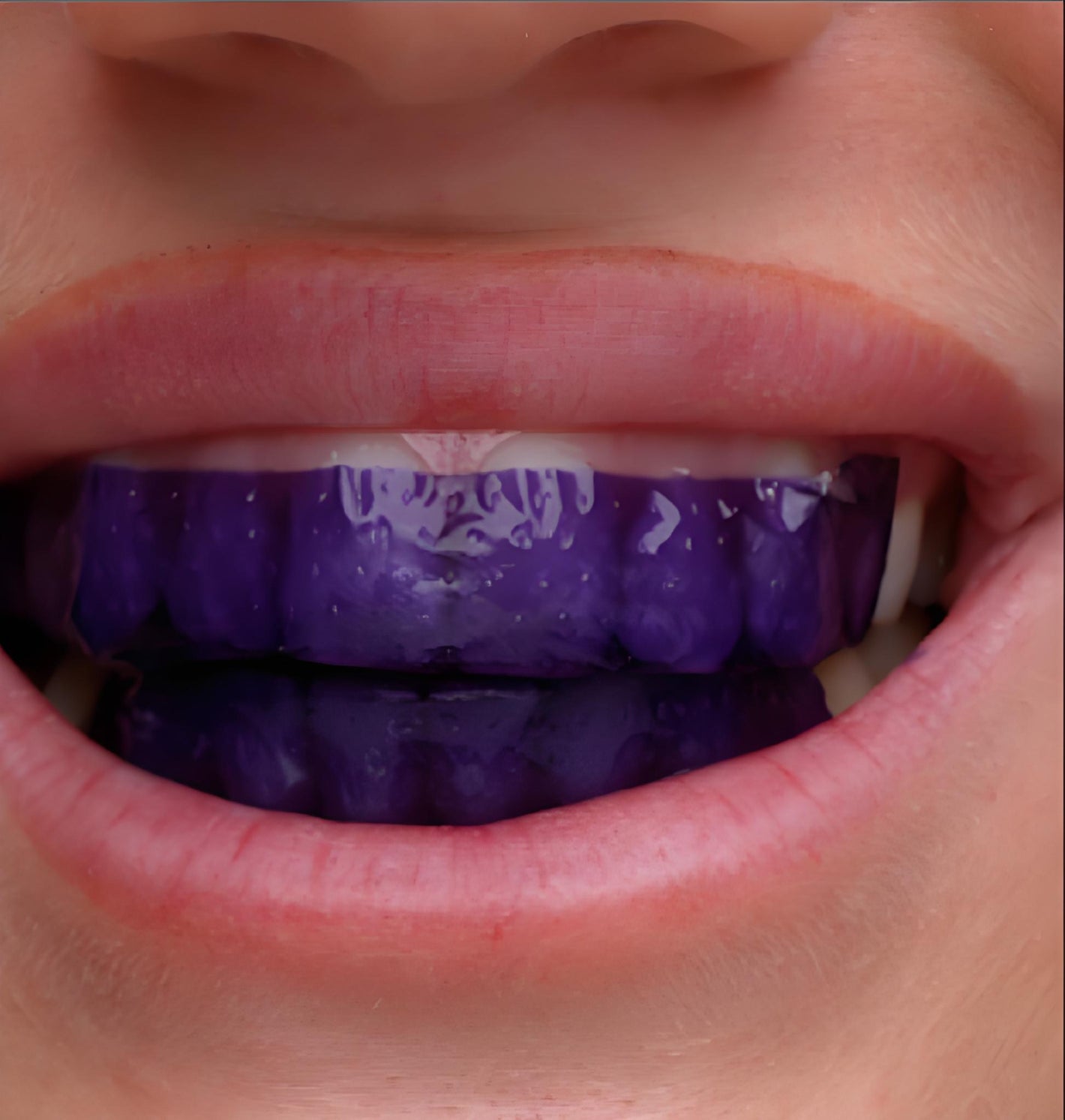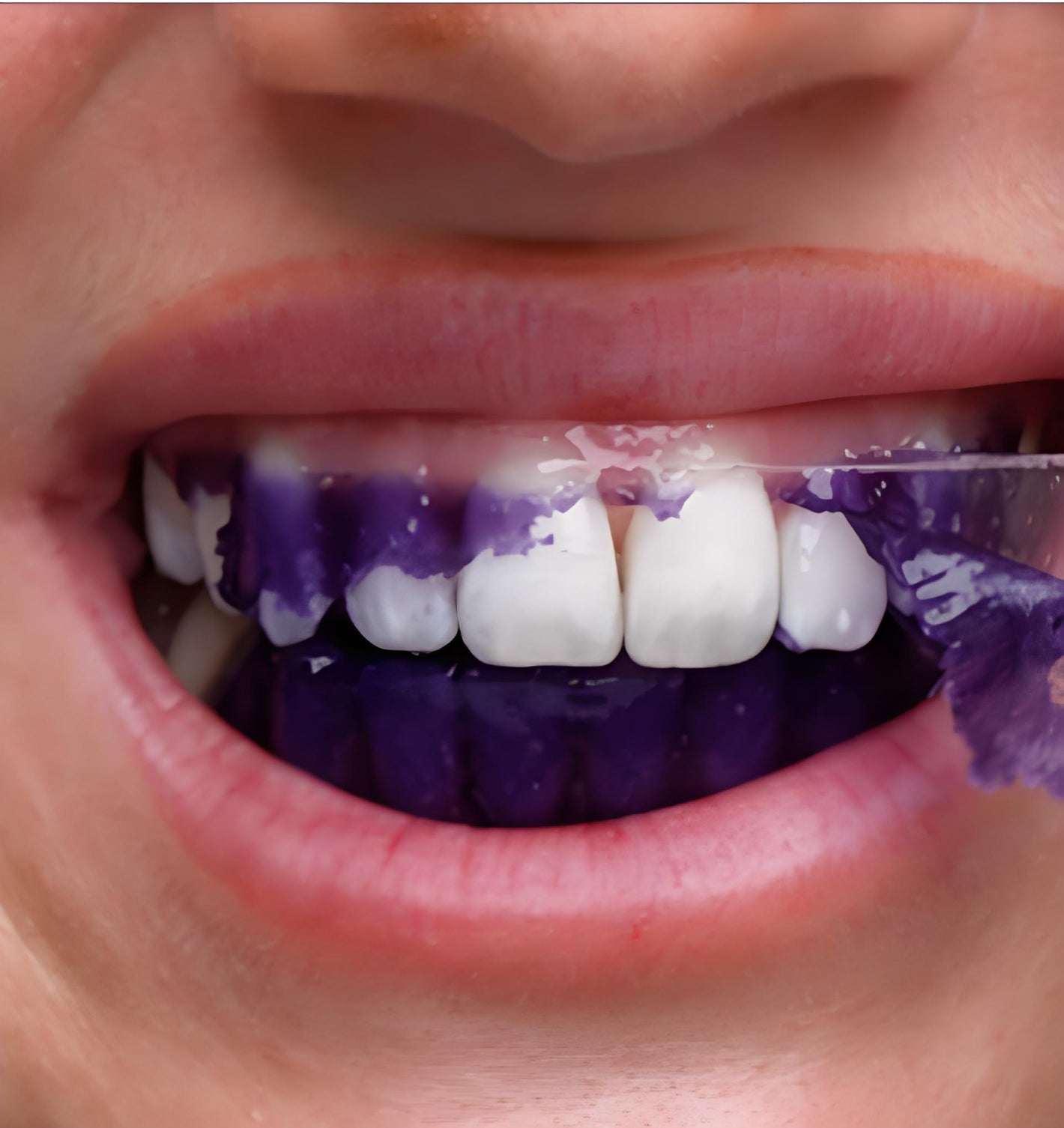 Will the purple colour show on my teeth?